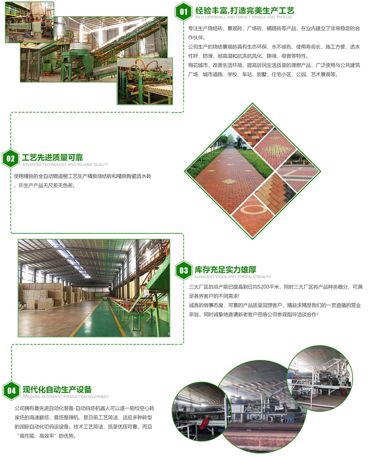 專注生產(chǎn)燒結(jié)磚,景觀磚,廣場(chǎng)磚,鋪路磚等產(chǎn)品,在業(yè)內(nèi)建立了非常穩(wěn)定的合作伙伴。 公司生產(chǎn)的燒結(jié)景觀磚具有生態(tài)環(huán)保、輕易不褪色、使用壽命長(zhǎng)、施工方便、透水性好、防滑、耐高溫和抗凍抗風(fēng)化、降噪、吸音等特性。 美化城市,改善生活環(huán)境,提高居民生活質(zhì)量的理想產(chǎn)品,廣泛使用與公共建筑廣場(chǎng)、城市道路、學(xué)校、車站、別墅、住宅小區(qū)、公園、藝術(shù)景觀等。